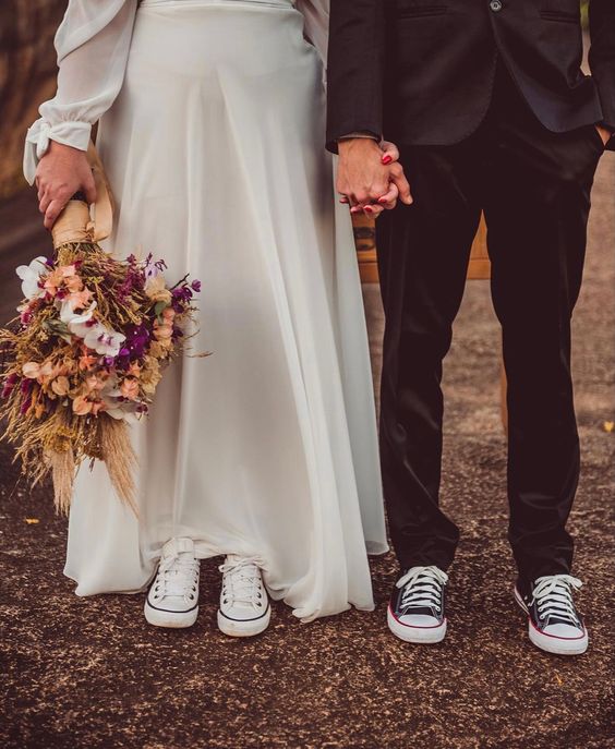 همچنین از آنجایی که این کتونی ها در پا بسیار راحت هستند، شما می توانید ساعت ها با آن برقصید بدون آنکه ذره ای پای شما را اذیت کند. ترکیب لباس عروسی و این مدل از کفش های کانورس، یکی از بهترین ست های دخترانه با کفش آل استار است.